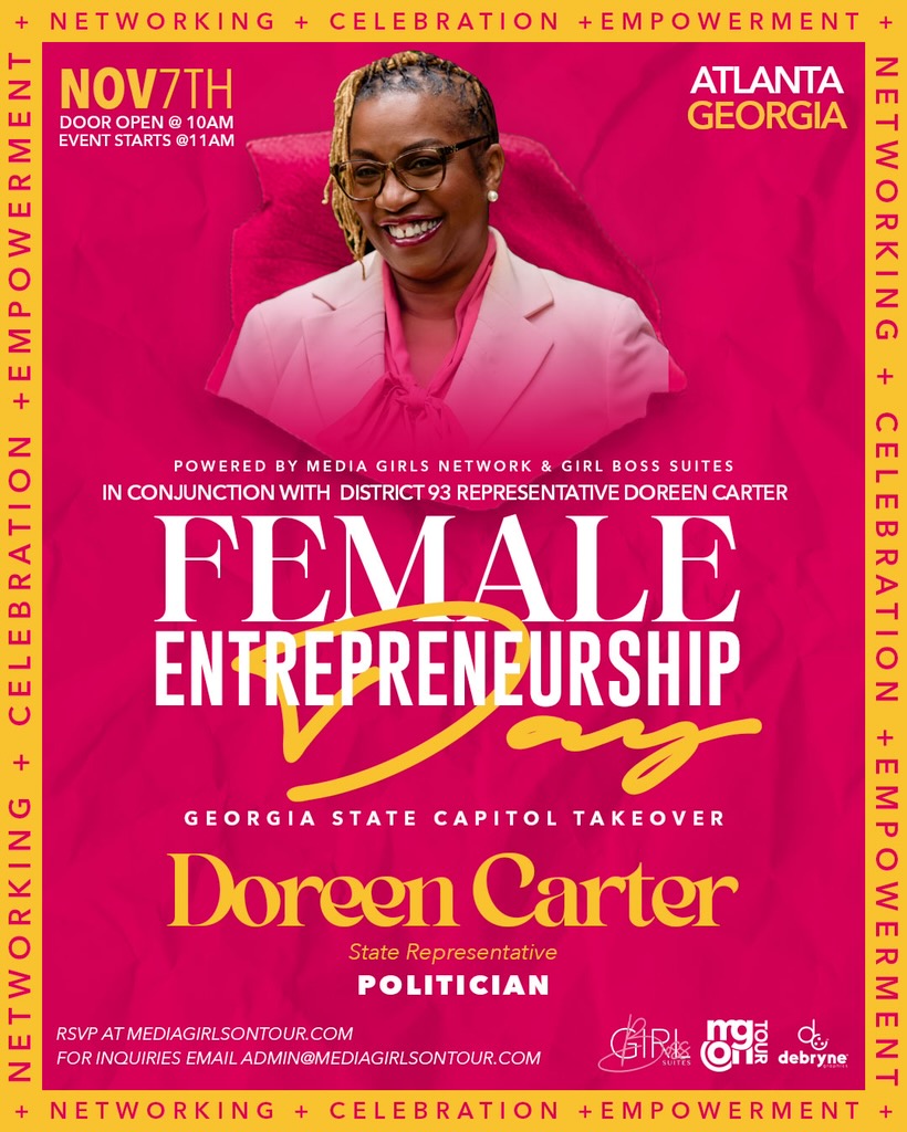 ATLANTA – State Representative Doreen Carter (D-Lithonia) will host Female Entrepreneurship Day on Friday, November 7, 2025, at 11 a.m. at the South Wing Steps of the Georgia State Capitol in Atlanta, Georgia.