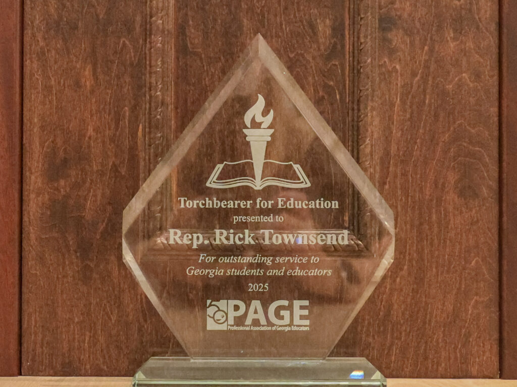 ATLANTA – State Representative Rick Townsend (R-Brunswick) was recently recognized as a 2025 Torchbearer for Education by the Professional Association of Georgia Educators (PAGE) for his leadership on House Bill 235, the Georgia Supporting Living Donor Educators Act, which he sponsored during the 2025 legislative session, as well as his support for public education and public educators. In addition to his efforts on HB 235, Rep. Townsend has contributed to education initiatives through his service on the House Education Committee and his commitment to advancing school safety, literacy and technical education.