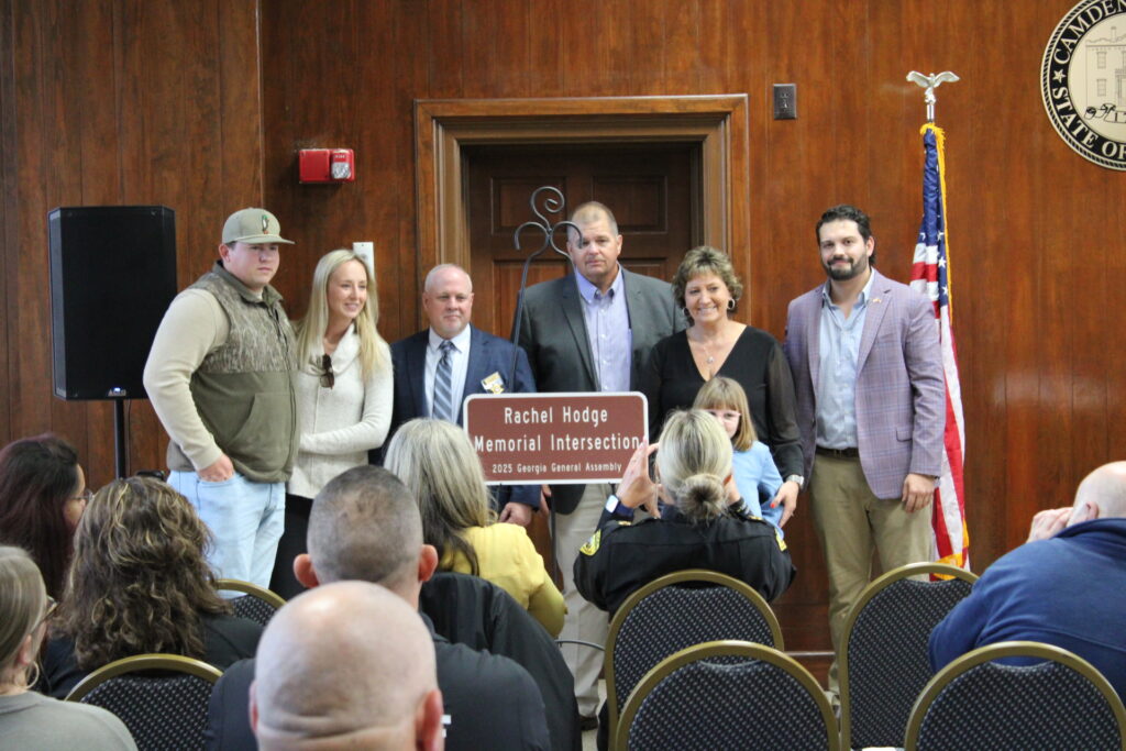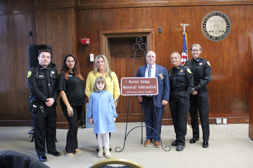 ATLANTA – State Representative Steven Sainz (R-St. Marys), chairman of the House Interstate Cooperation Committee, along with the Camden County Sheriff’s Office (CCSO), recently held a ceremony at the Historic Courthouse in Woodbine to commemorate the installation of the Rachel Hodge Memorial Intersection sign. The sign, located at the intersection of State Route 25 Spur/Satilla Bluff Road and Pine Forest Drive, is now permanently displayed in recognition of former Communications Officer Rachel J. Hodge and her legacy within the community.