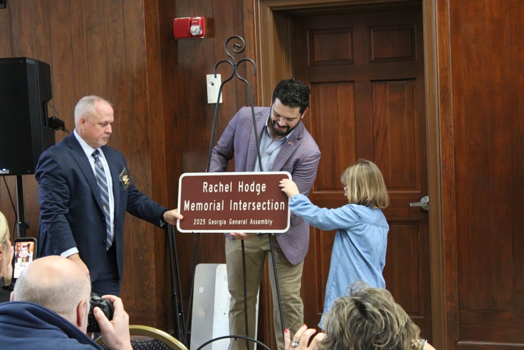 During the ceremony, the Hodge family was presented with an honorary memorial sign identical to the one installed at the intersection, providing them with a keepsake that reflects Rachel’s impact.