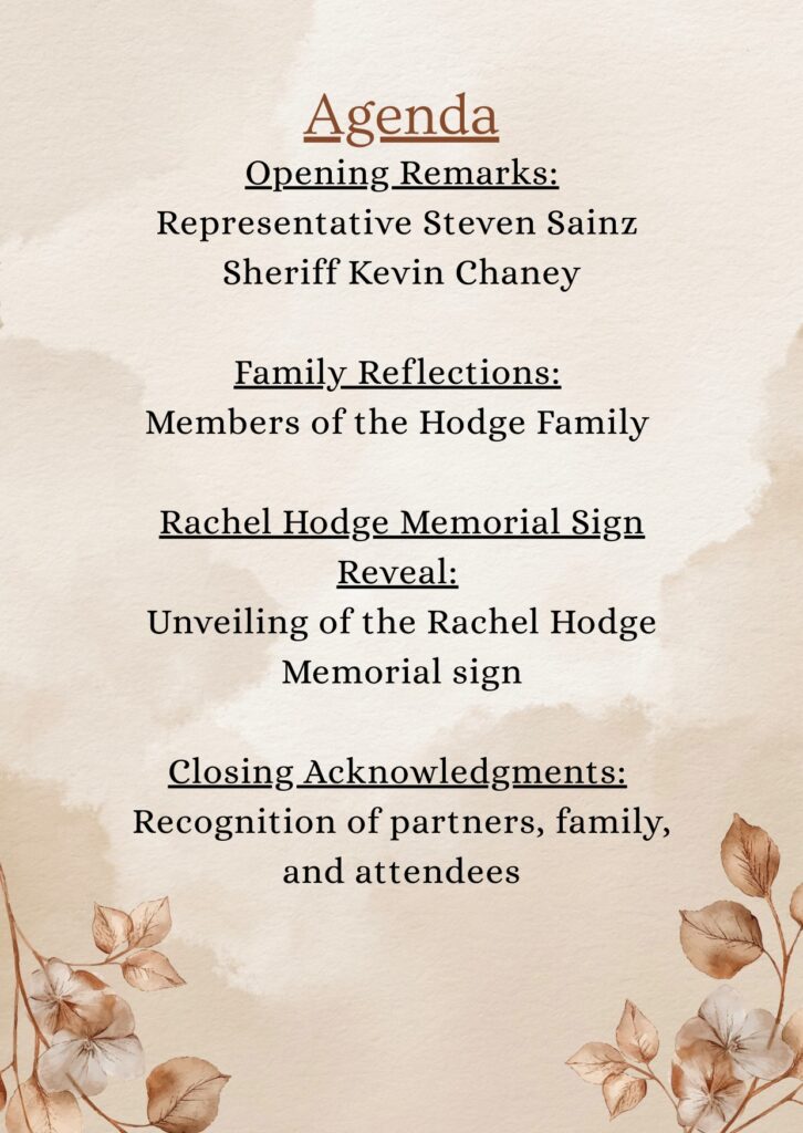 Rep. Steven Sainz to Host Road Naming Ceremony Honoring the Rachel Hodge Memorial Intersection Tomorrow
